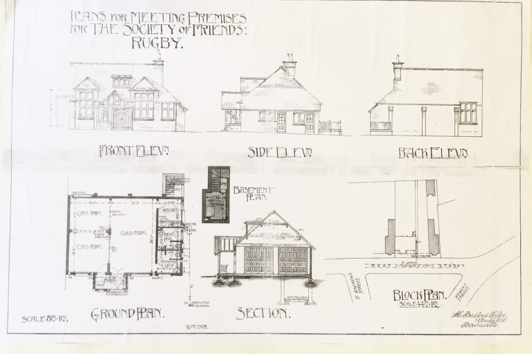 Despite being close to Birmingham, a major Quaker centre, there is little evidence of Quaker activity in Rugby before the start of the twentieth century. While a ‘Circular Meeting’, when Quakers from different counties came together, was held in Rugby in 1735, the first Quaker funeral was recorded in 1908 and the first Quaker wedding did not take place until 1934.